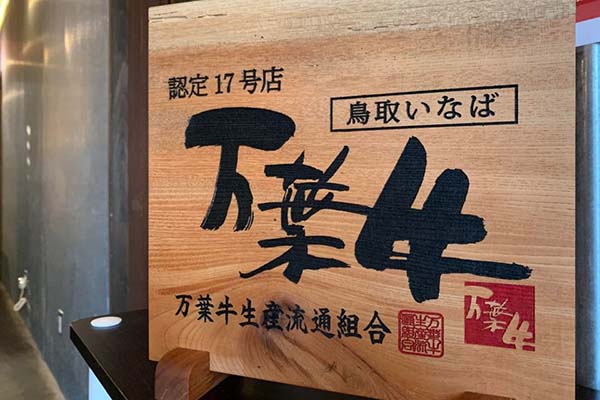 また、当店は、鳥取いなば「万葉牛」指定店です。万葉牛は、鳥取県にて飼育された黒毛和種で、肉味に旨味があり、脂の融点が低く口の中に入れるとすーっと溶けていく口溶けの良さが特徴です。